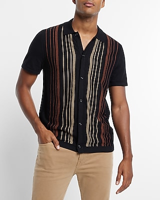 Men S Short Sleeve Knit Cardigan Sweater Vintage Stripe Lapel Collar Polo Shirt Walmart Canada